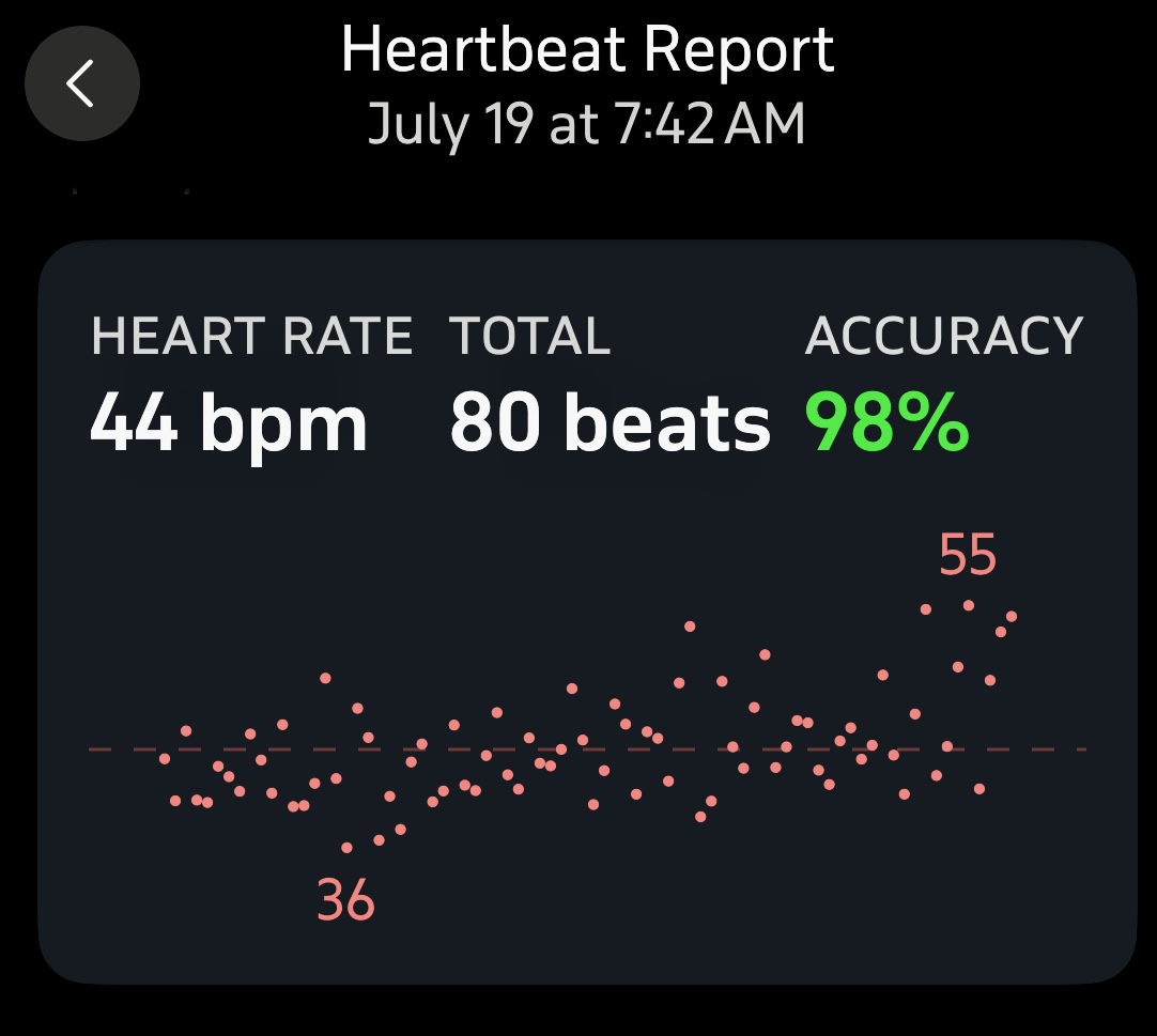 Resting Heart Rate (RHR) is the number of times your heart beats per minute when you are at rest. It is best taken within a few minutes of getting up in the morning. I am proud of the low Resting Heart Rate of 45 itself. This is an achievement and a sign of efficiency and good cardiovascular health. The lowest average I have gone a few times is in the range of 42/43. And a lowest recorded heart beat is 36!